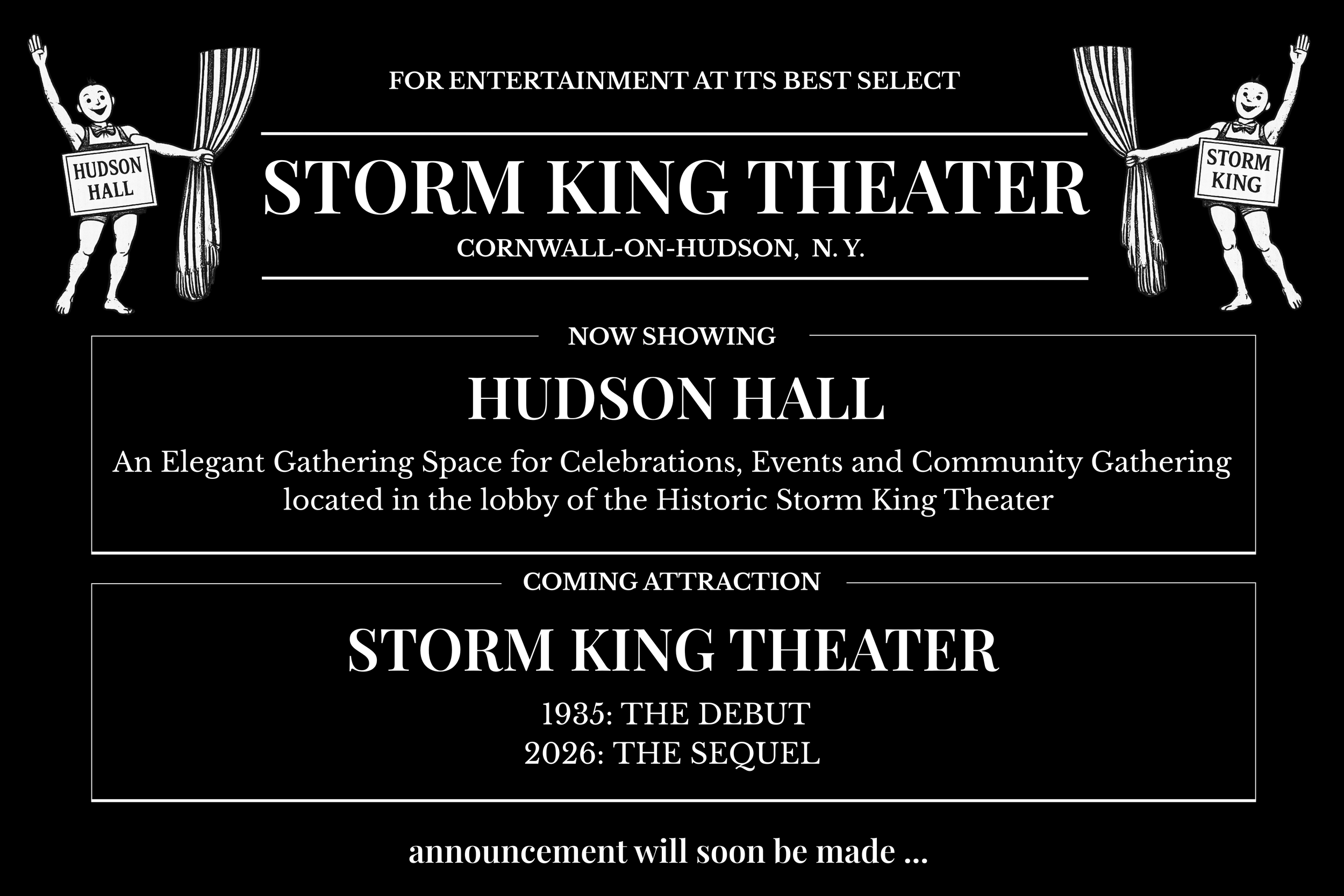 Storm King Theater will reopen in 2026 as a restored and reimagined destination for film, performance, and cultural experiences, honoring its historic legacy while introducing a new era of programming and community engagement.